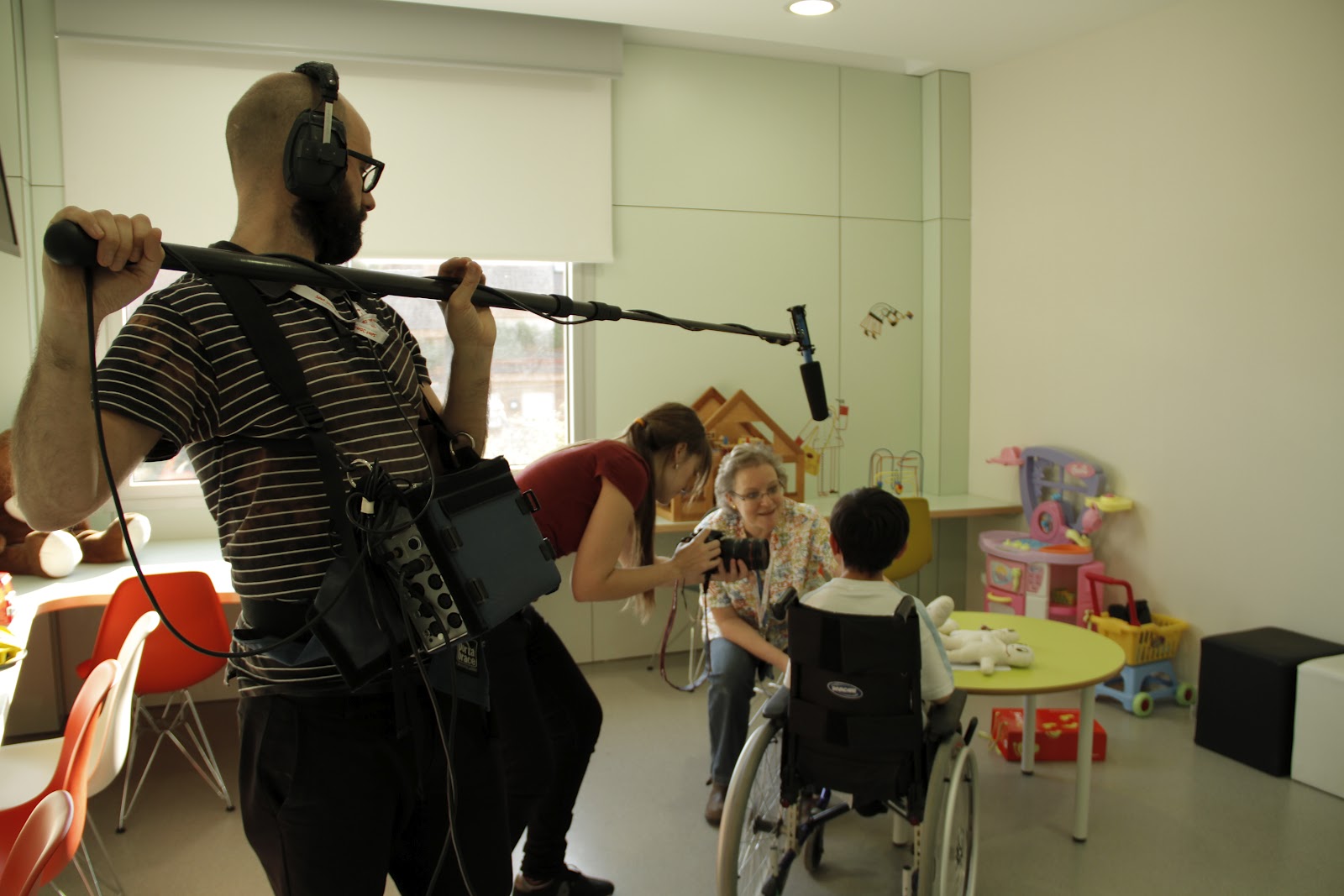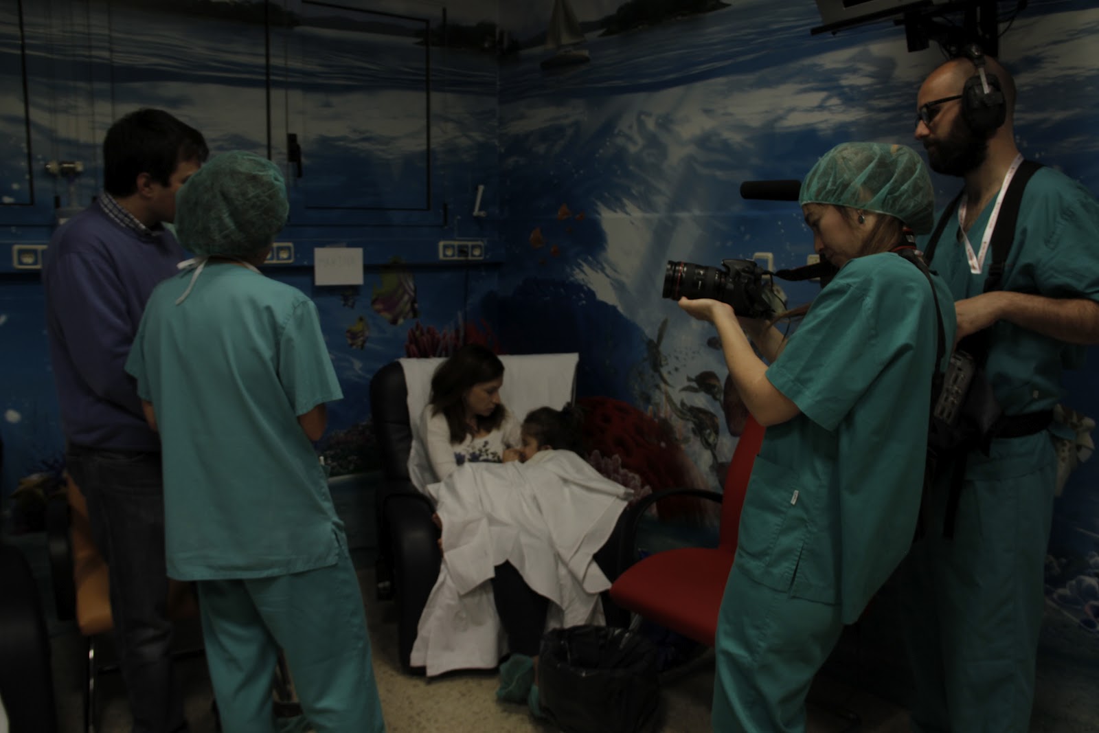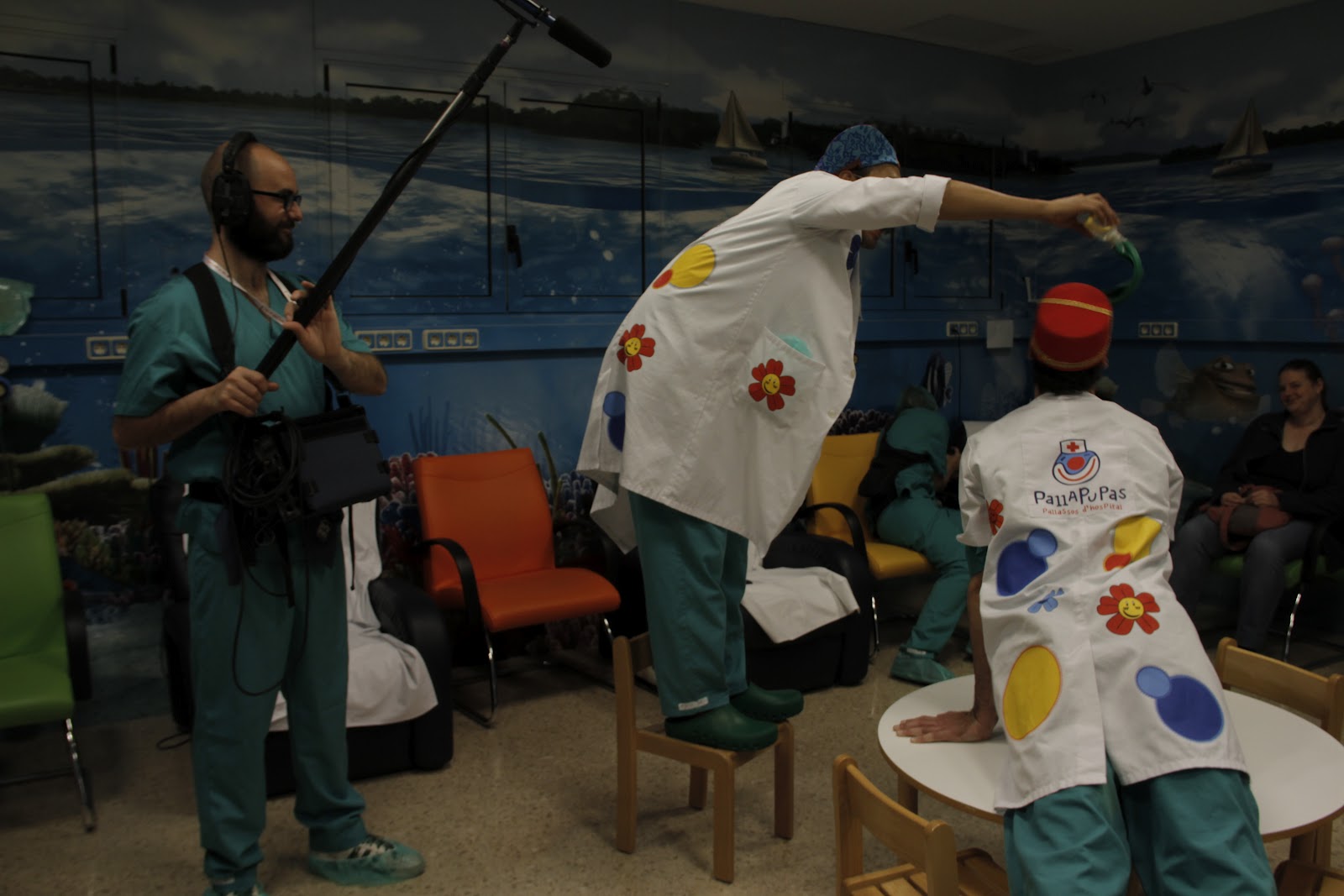El nostre equip de rodatge (Adriana realitzant, Cris a la càmera amb el reforç de la Núria, Agost amb el so i Bibi portant la producció), va viure un dia de grabació molt intens amb la gran ajuda de la Mariana dins de l’hospital que va fer possible organitzar-ho tot.